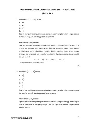 632021 di sini ada kumpulan latihan prediksi dan tryout contoh soal un matematika smp kelas 9 dan pembahasannya bisa di download dalam pdf. Di sini ada kumpulan latihan prediksi dan tryout contoh soal un matematika smp kelas 9 dan pembahasannya, bisa di download dalam pdf. View 10 soal un matematika smp 2009.pdf from matematika 12345678 at sma negeri 4 bekasi. Dokumen negara 1 sangat rahasia cpns. Model soal ujian nasional mata pelajaran matematika smp ditinjau dari kriteria national assessment of educational progress. Prediksi un matematika smp/mts tahun 2013. Penelitian ini bertujuan untuk mengetahui seberapa besar persentase soal tipe hots pada setiap butir soal un smp provinsi jateng . 02022021 bocoran soal un unbkunkp matematika smp 2019 pdf ujian nasional un tahun 2019 sudah akan dimulai. Download latihan soal ukg guru . Tandai sebagai konten tidak pantas. Unduh sebagai pdf, txt atau baca online dari scribd. Soal osn matematika smp soal osn matematika smp tingkat propinsi 2012.